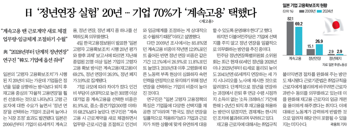 정년 연장은 선택이 아니라 구조적 필요로 보는 시각이 늘고 있습니다.