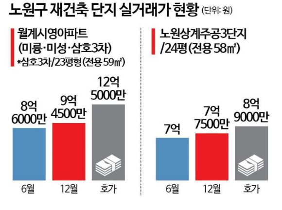 - 상계주공3단지, 상계주공6단지 20평대가 8억대 호가 형성.